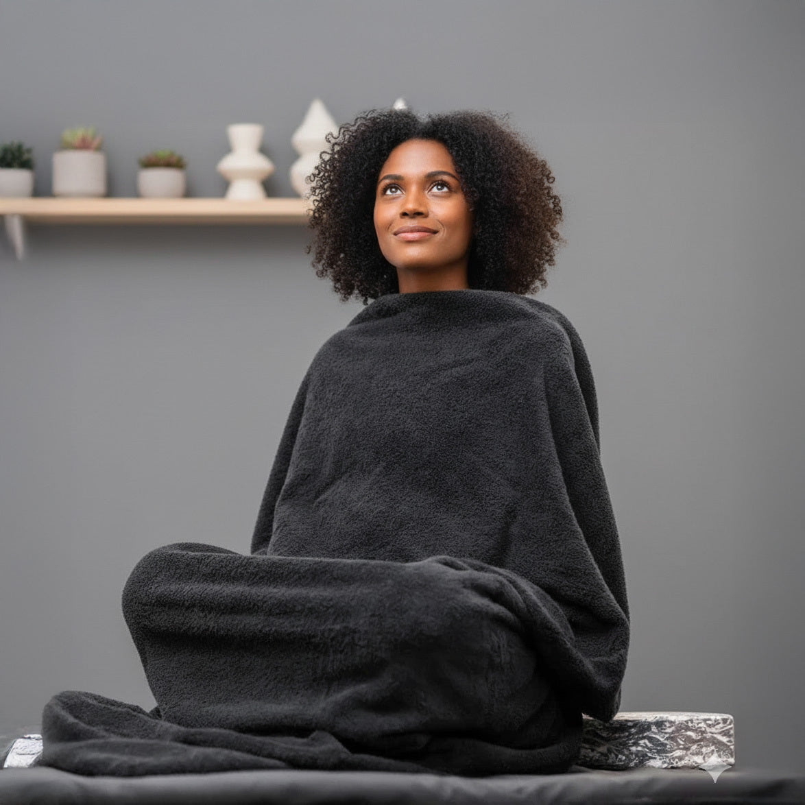 Unlike traditional saunas that heat the air, infrared blankets use far-infrared rays (FIR) to warm your body directly from the inside out — triggering sweat, enhancing blood flow, and helping flush out toxins.